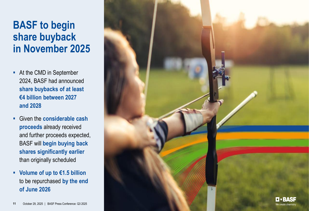 In a significant acceleration of its shareholder return plans, BASF announced it would begin share buybacks earlier than previously communicated: