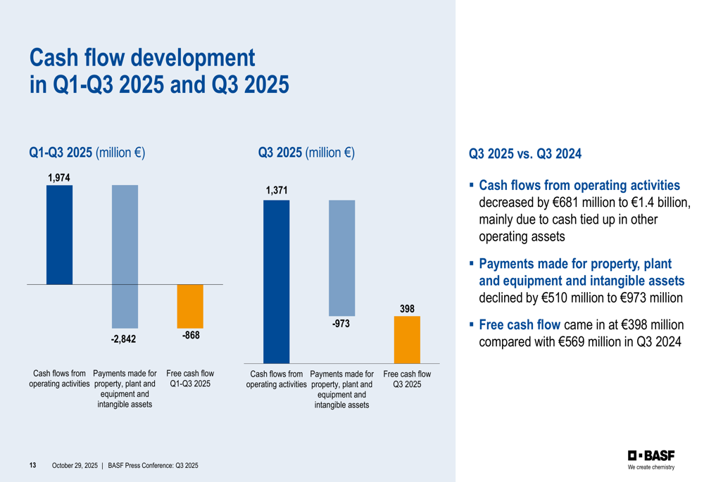 The third quarter showed improvement in this metric, with free cash flow turning positive at €398 million, though still below the €569 million generated in Q3 2024. Cash flows from operating activities decreased primarily due to cash tied up in other operating assets, while capital expenditures declined year-over-year.