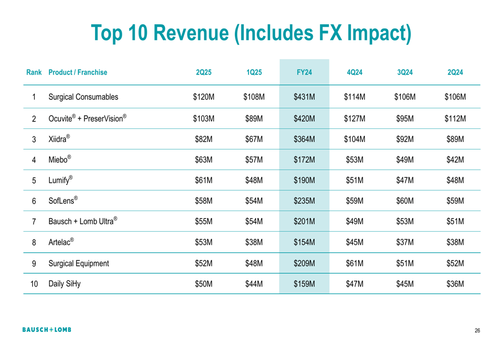 The company’s top revenue-generating products for Q2 2025 included Surgical Consumables ($120 million), Ocuvite + PreserVision ($103 million), and Xiidra ($82 million):