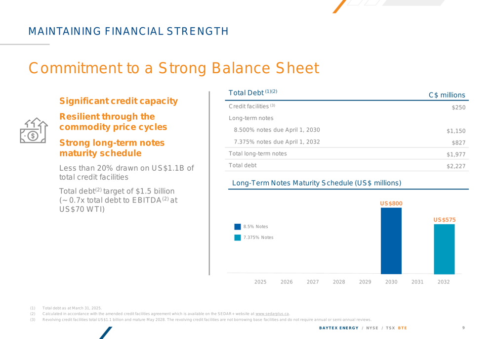 Baytex is focused on maintaining financial strength and flexibility through prudent balance sheet management and risk mitigation strategies.