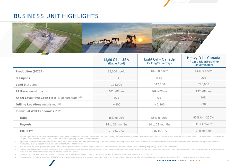 Baytex’s diversified asset base provides multiple avenues for value creation, with each business unit contributing to the company’s overall strategy:
