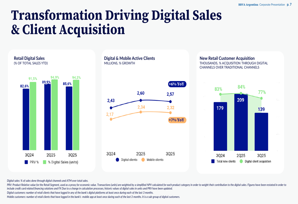 A bright spot in BBVA Argentina’s presentation was the continued progress in digital transformation. The bank reported steady growth in digital sales, mobile active clients, and new customer acquisition through digital channels.