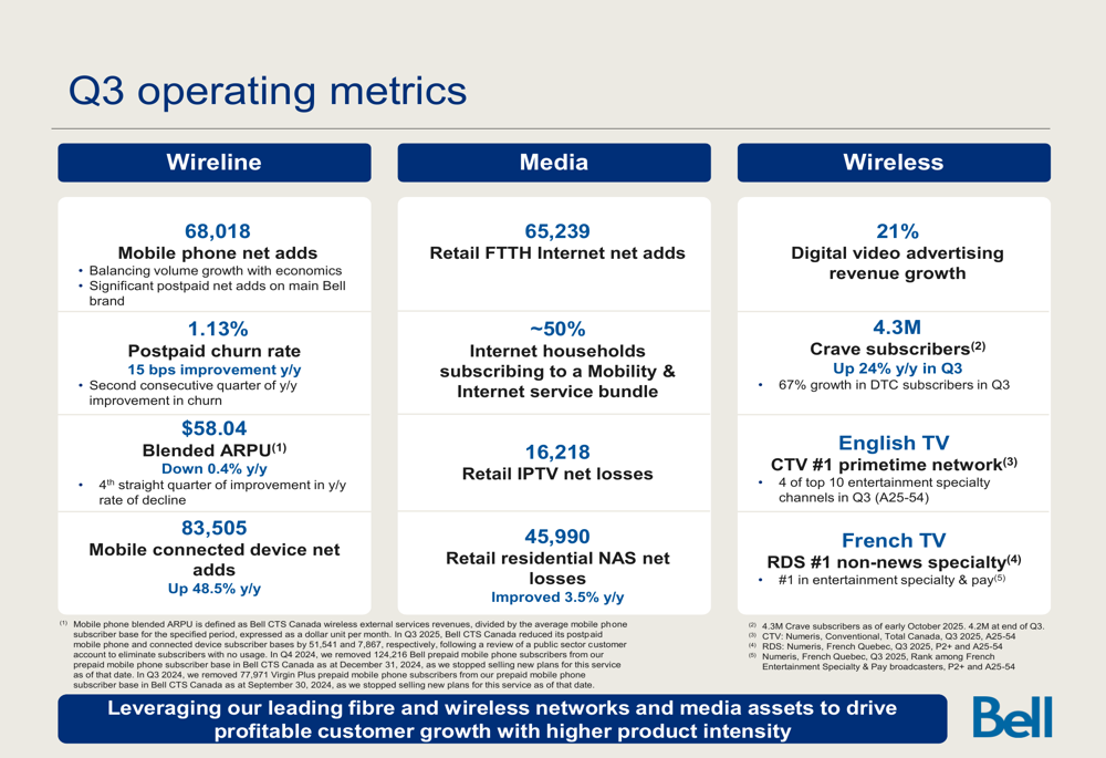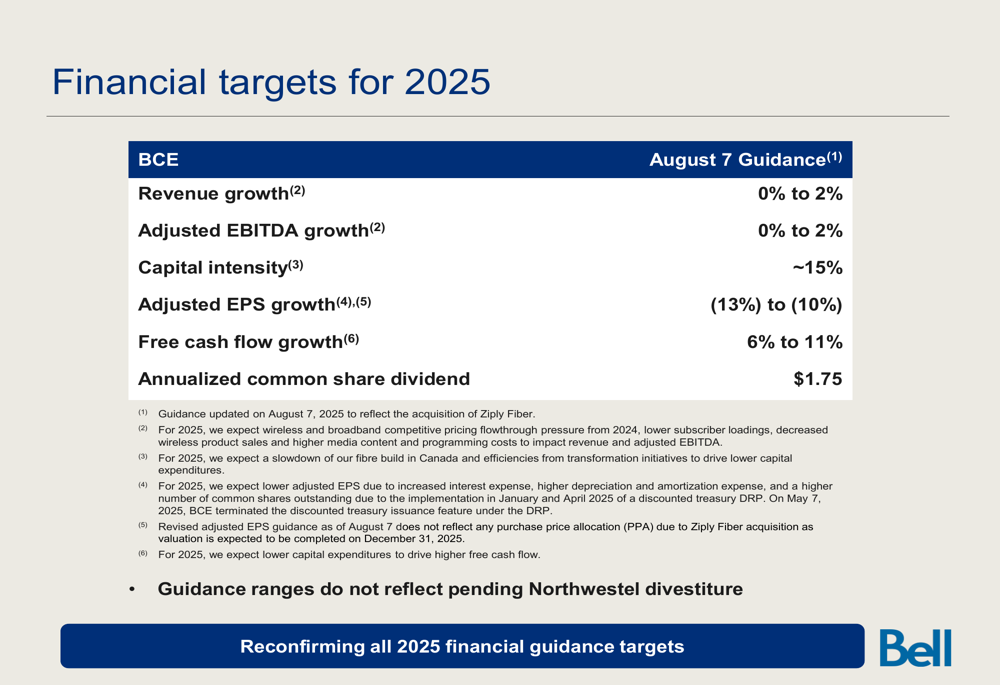 "All financials are tracking well to FY2025 guidance," BCE noted in its presentation, maintaining its full-year outlook despite macroeconomic pressures affecting parts of its business.