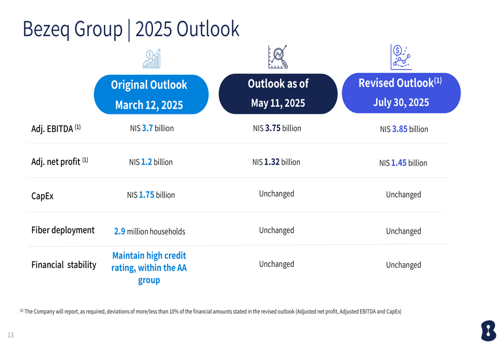 In a significant vote of confidence in its business trajectory, Bezeq revised its 2025 outlook upward, now expecting adjusted EBITDA of NIS 3.85 billion (up from NIS 3.75 billion) and adjusted net profit of NIS 1.45 billion (up from NIS 1.32 billion). The CapEx guidance remains unchanged at NIS 1.75 billion.