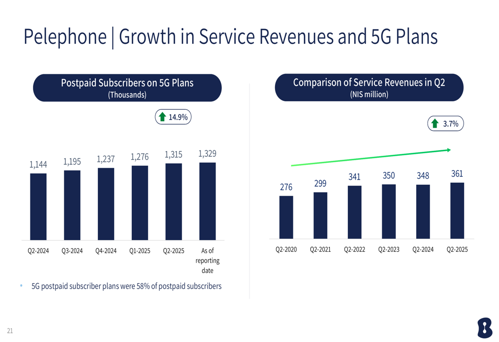 In the mobile segment, Pelephone reported 1.33 million subscribers on 5G plans, representing 58% of postpaid subscribers. The company added 14,000 net postpaid subscribers during the quarter, with cellular ARPU increasing by 4.5% to NIS 46.