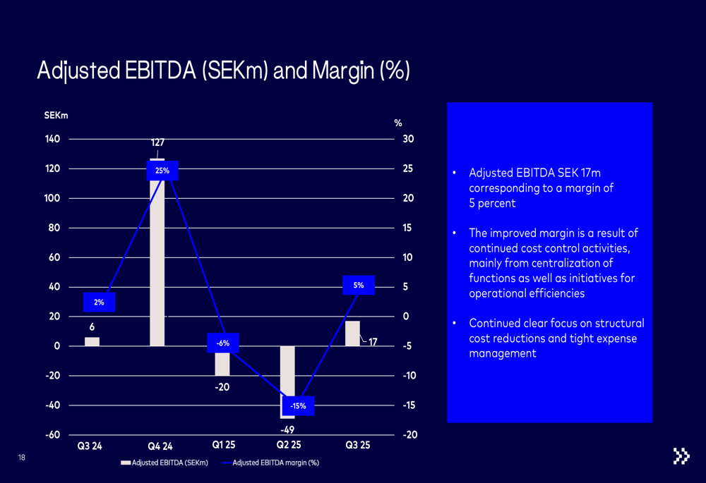 Profitability also improved significantly, with the adjusted EBITDA margin returning to positive territory at 5%, compared to -15% in the previous quarter. This improvement was attributed to continued cost control activities, mainly from centralization of functions and initiatives for operational efficiencies.
