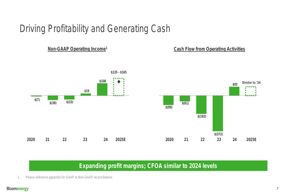 Adjusted EBITDA similarly showed substantial improvement, reaching $25.2 million compared to negative $18.2 million in the prior-year period. Perhaps most notably, Bloom Energy reported its first-ever positive Q1 non-GAAP EPS of $0.03, compared to a loss of $0.17 per share in Q1 2024.