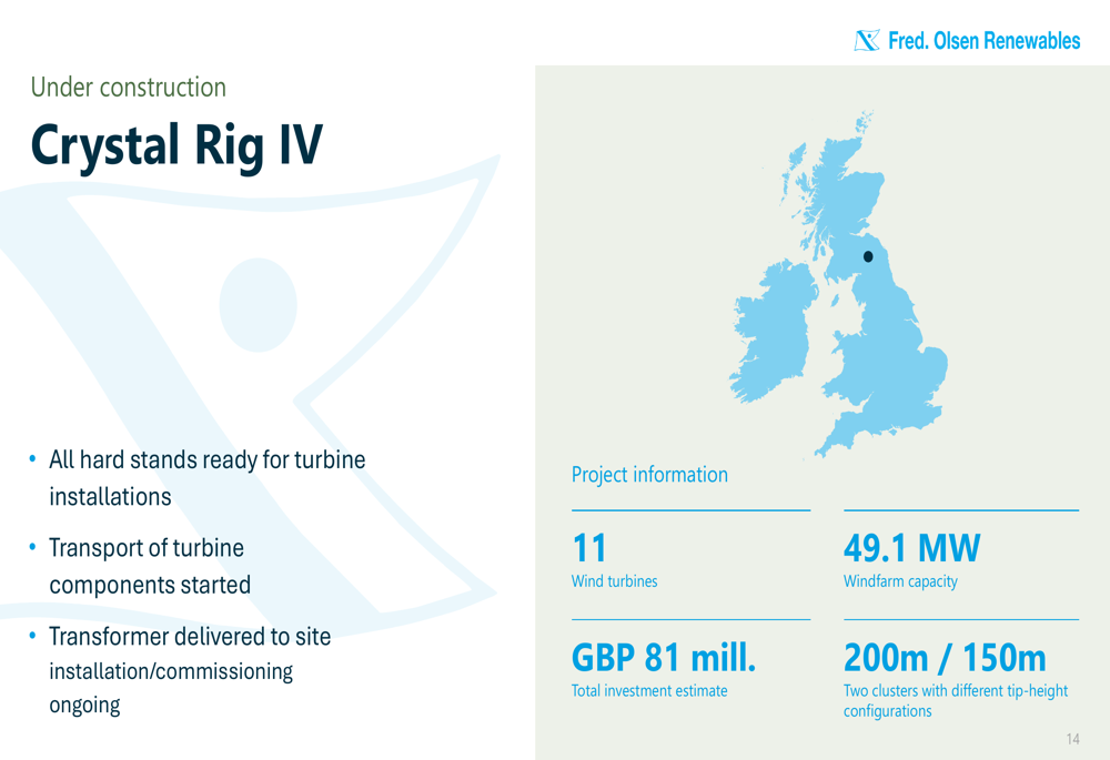 Bonheur continued to advance several key projects across its business segments during the quarter. In the Renewable Energy segment, construction of Crystal Rig IV and Windy Standard III wind farms in the UK is progressing well.