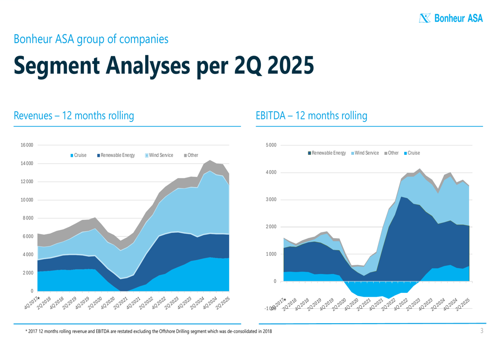 Looking ahead, Bonheur faces both opportunities and challenges across its diverse business portfolio, with particular focus on advancing its renewable energy projects and maintaining strong performance in its cruise business while navigating the volatile conditions in the wind service market.