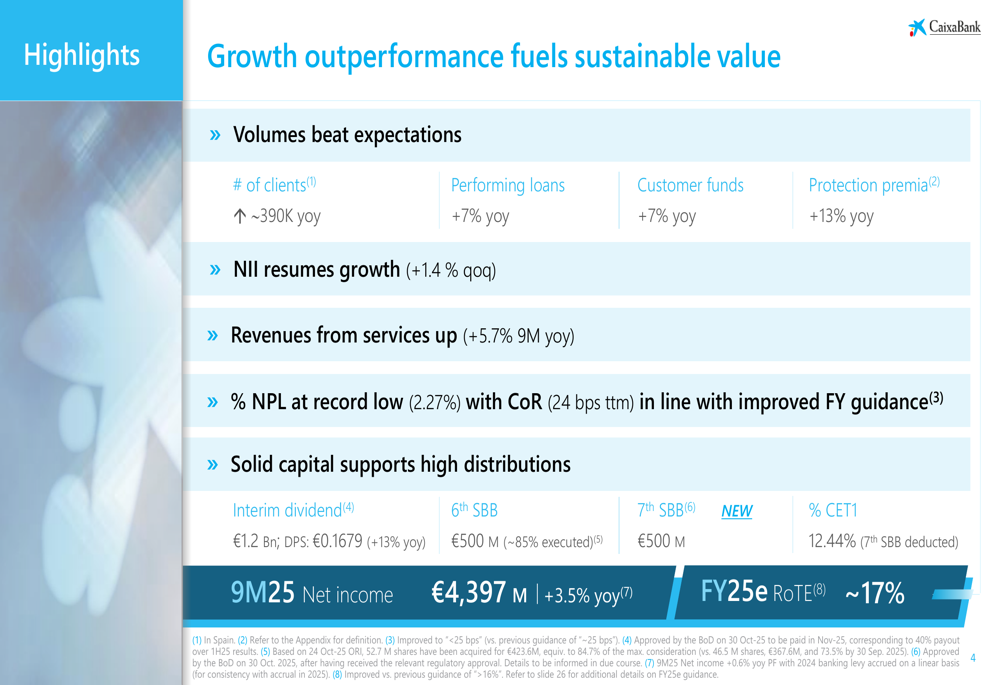 While the bank’s presentation highlights strong growth across multiple metrics, investors will be watching closely to see if the stabilization in quarterly net income is temporary or indicates a more challenging environment ahead. Nevertheless, CaixaBank’s market leadership, digital transformation initiatives, and strong capital position appear to provide a solid foundation for continued growth and shareholder returns.