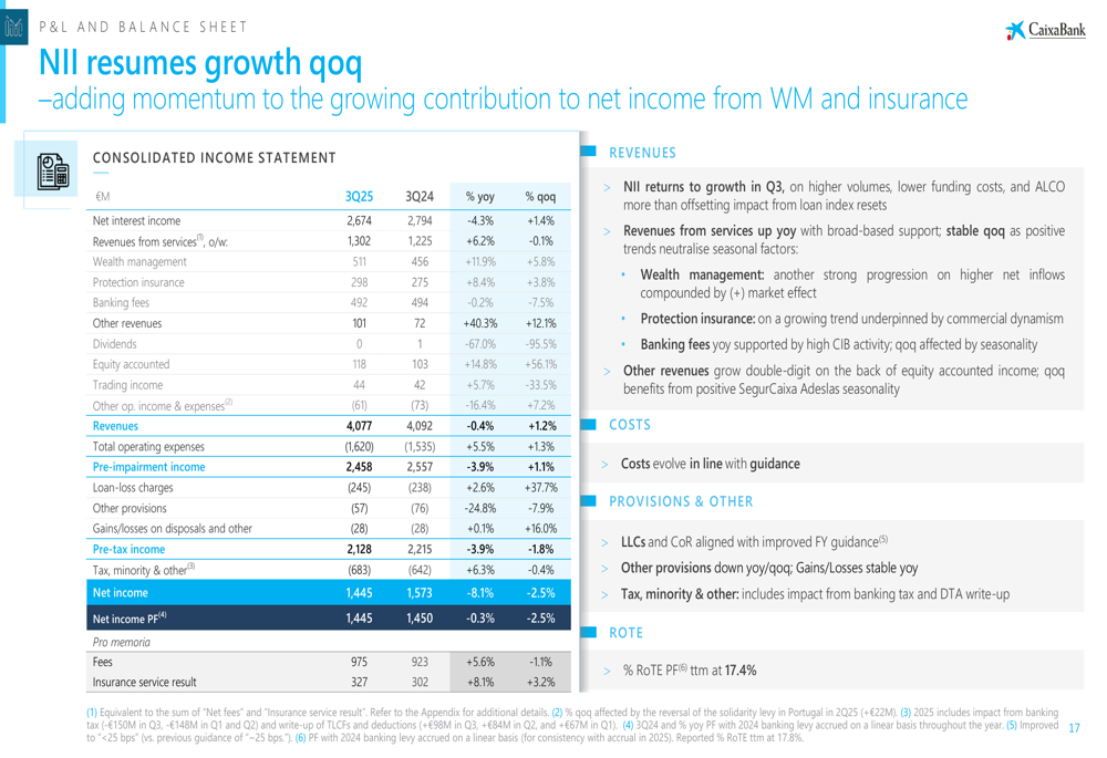A key highlight was the resumption of net interest income (NII) growth, which increased 1.4% quarter-over-quarter after previous periods of pressure. Revenues from services also showed strong momentum, rising 5.7% for the nine-month period compared to the previous year.