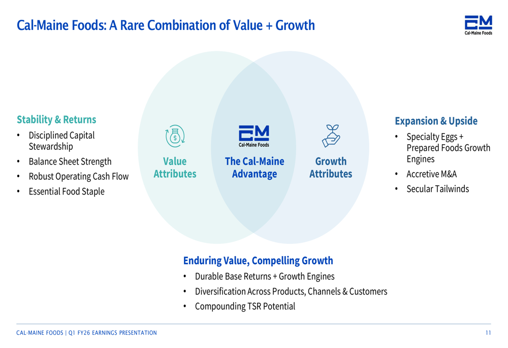 Cal-Maine positioned itself as offering a rare combination of value and growth attributes: