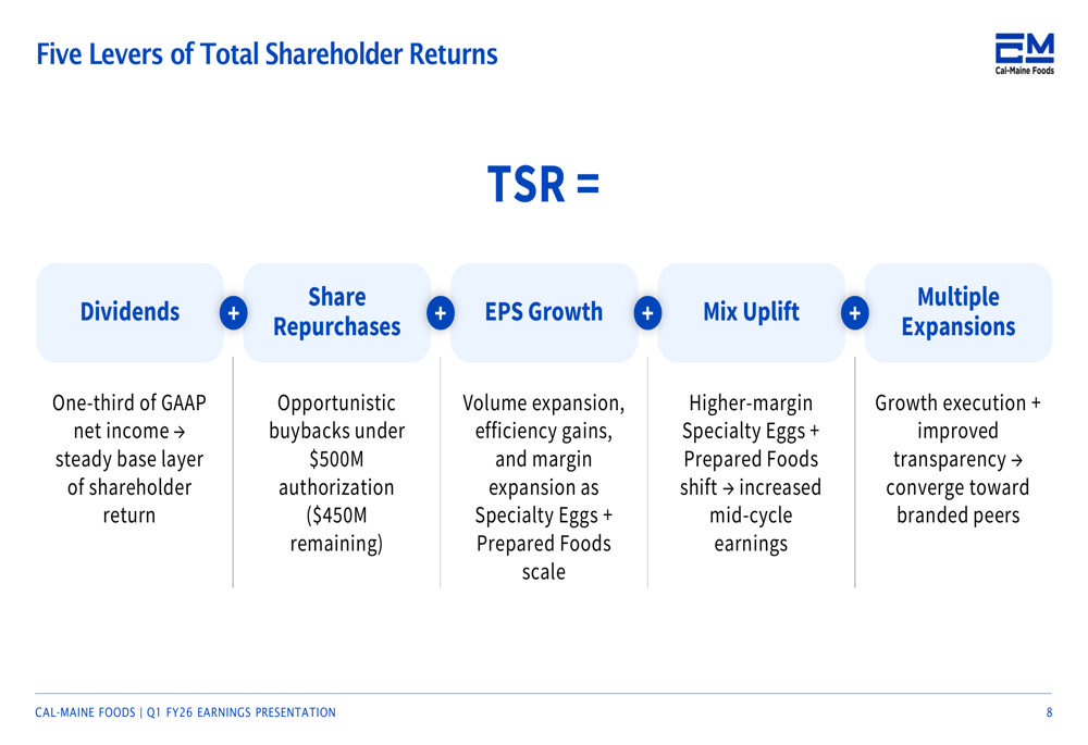 Cal-Maine outlined five levers it believes will drive total shareholder returns going forward: