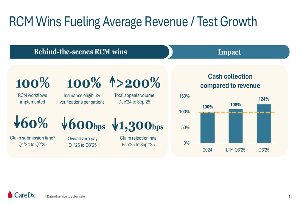 The company’s Revenue Cycle Management (RCM) improvements have contributed significantly to financial performance. As illustrated in the following slide, these initiatives have led to substantial improvements in cash collection compared to revenue: