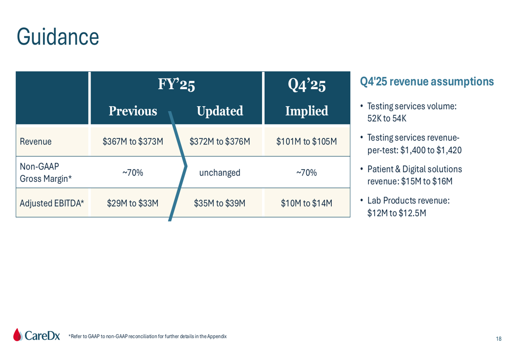 For Q4 2025, the company anticipates revenue between $101 million and $105 million, with testing services volume projected at 52,000 to 54,000 tests and revenue-per-test between $1,400 and $1,420.