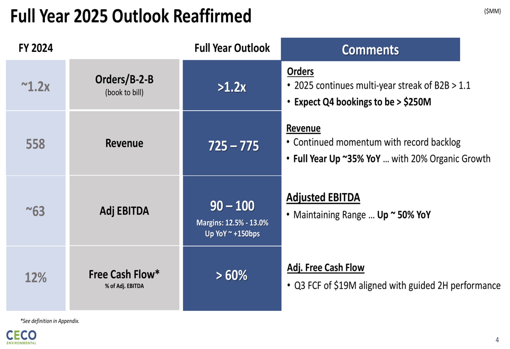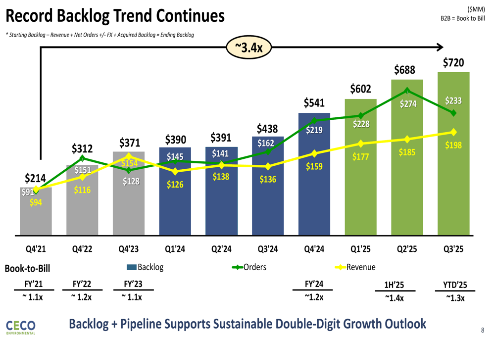 CECO Environmental's Q3 2025 results demonstrated robust performance with substantial year-over-year improvements across all major financial indicators. The company reported record backlog levels, strong order intake, and significant revenue and earnings growth.