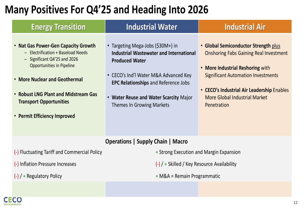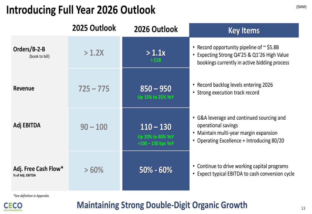 Looking ahead to 2026, CECO provided ambitious targets that represent substantial growth from its 2025 outlook: