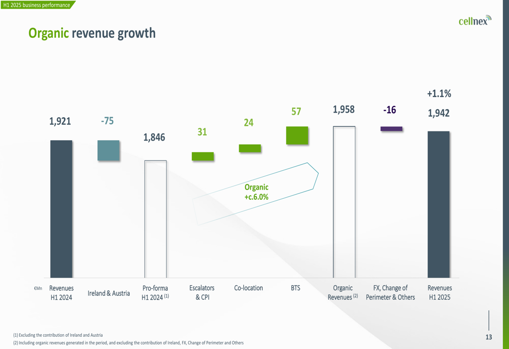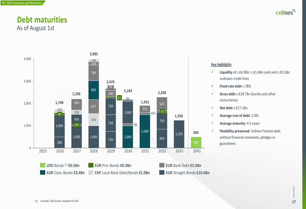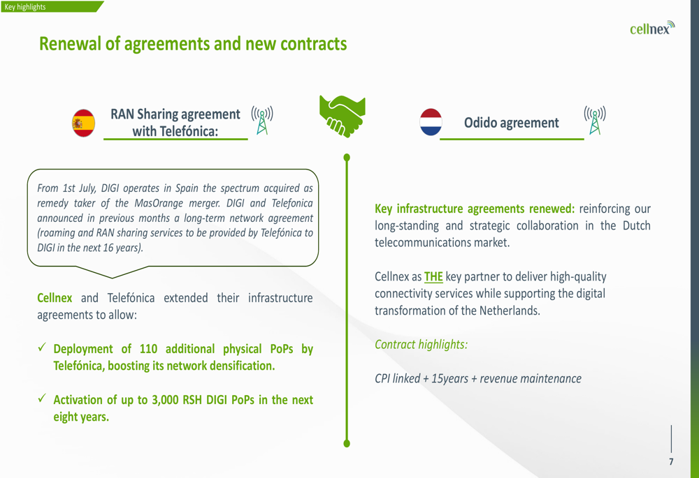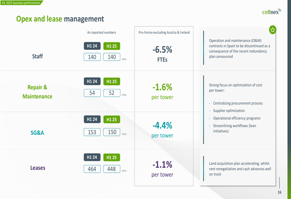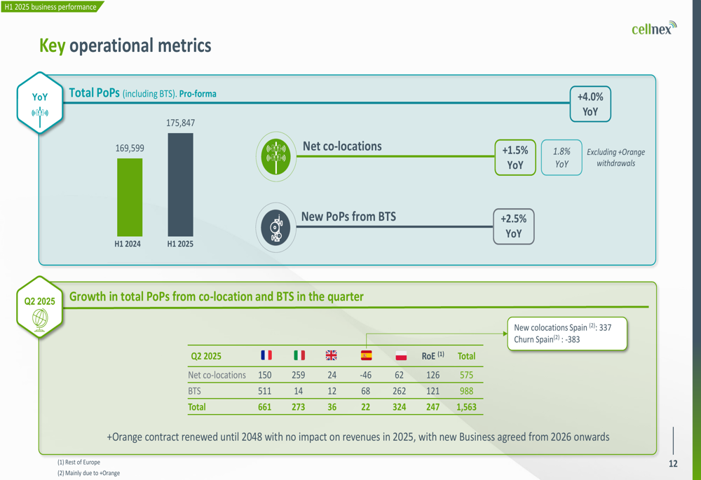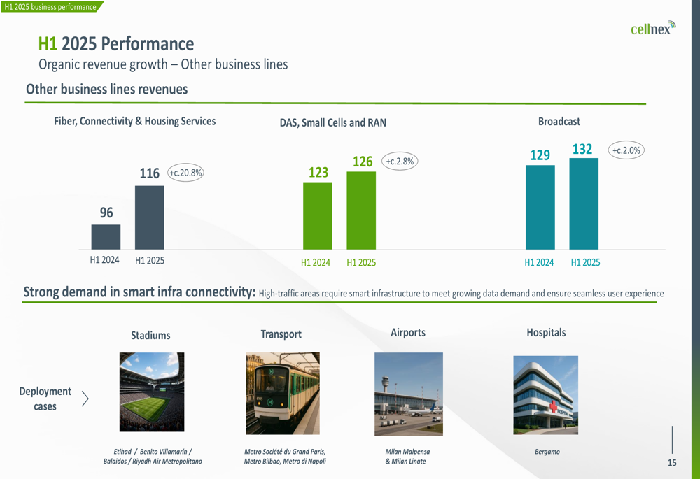 Cellnex made significant progress on strategic initiatives during H1 2025, reinforcing its long-term business stability. A key development was the renewal of its agreement with Odido in the Netherlands, extending their collaboration for an additional 15 years with CPI-linked terms that maintain revenue levels.