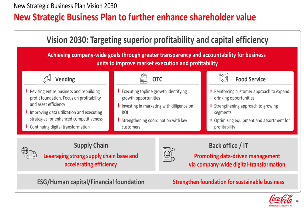 CCBJH also announced what it described as the largest shareholder return program in the company’s history, including a target dividend per share of ¥140-150 by 2030 and cumulative share buybacks of ¥150 billion.
