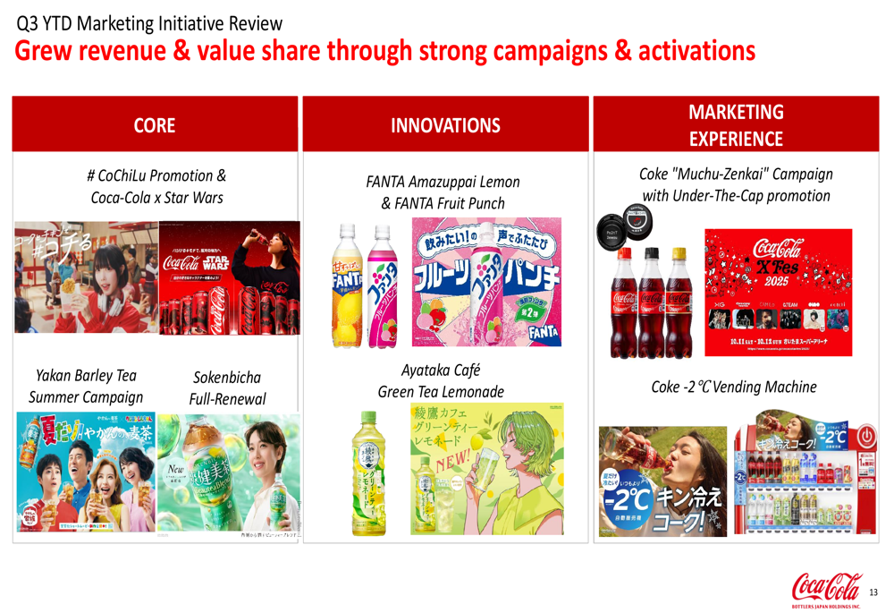 Key campaigns included the "CoChiLu Promotion & Coca-Cola x Star Wars" collaboration, the "Yakan Barley Tea Summer Campaign," and innovative product launches such as "FANTA Amazuppai Lemon" and "Ayataka Café Green Tea Lemonade." These initiatives helped strengthen the company’s market position despite challenging conditions.