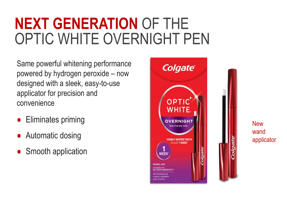 The company is introducing next-generation products like the Optic White Overnight Pen, featuring the same powerful whitening performance but with an improved applicator for precision and convenience: