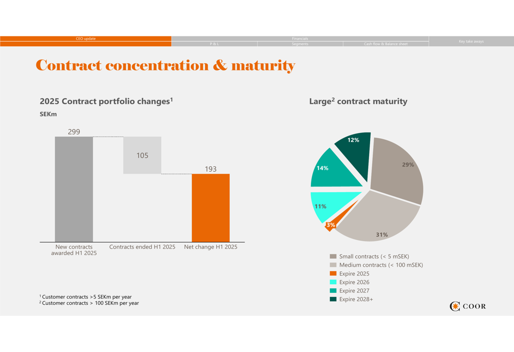 COOR has completed previously announced changes to its central staff organization, with the short-term priority now focused on improving systems and support. Management indicated plans to hold a Capital Markets Day early next year, suggesting potential strategic updates on the horizon.