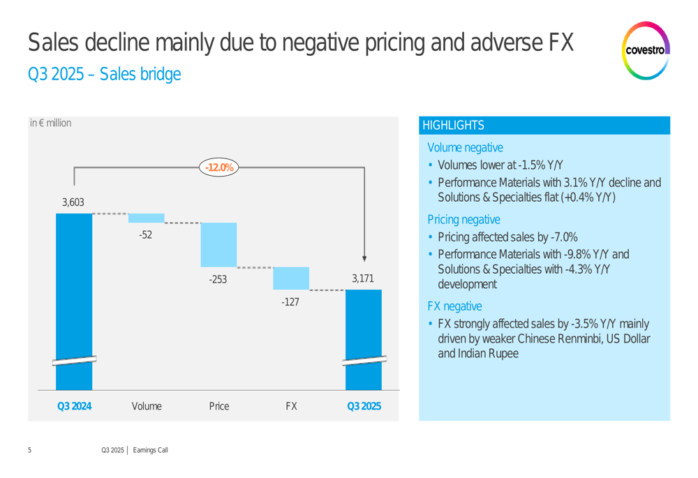 Covestro’s two main business segments showed divergent performance patterns during Q3 2025.