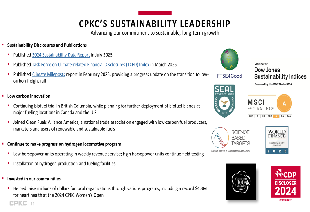The company also highlighted its sustainability leadership, continuing to make progress on its hydrogen locomotive program and investing in communities across its network.