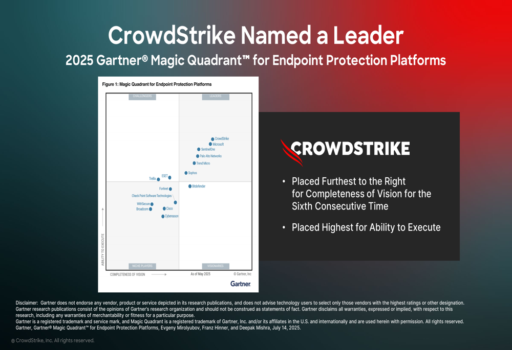 CrowdStrike continues to strengthen its leadership position in the cybersecurity market, as evidenced by its recognition in the 2025 Gartner Magic Quadrant for Endpoint Protection Platforms: