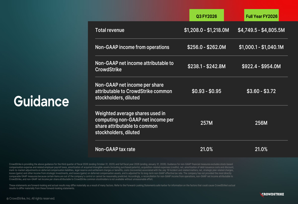 Looking ahead, CrowdStrike provided optimistic guidance for Q3 FY2026 and the full fiscal year: