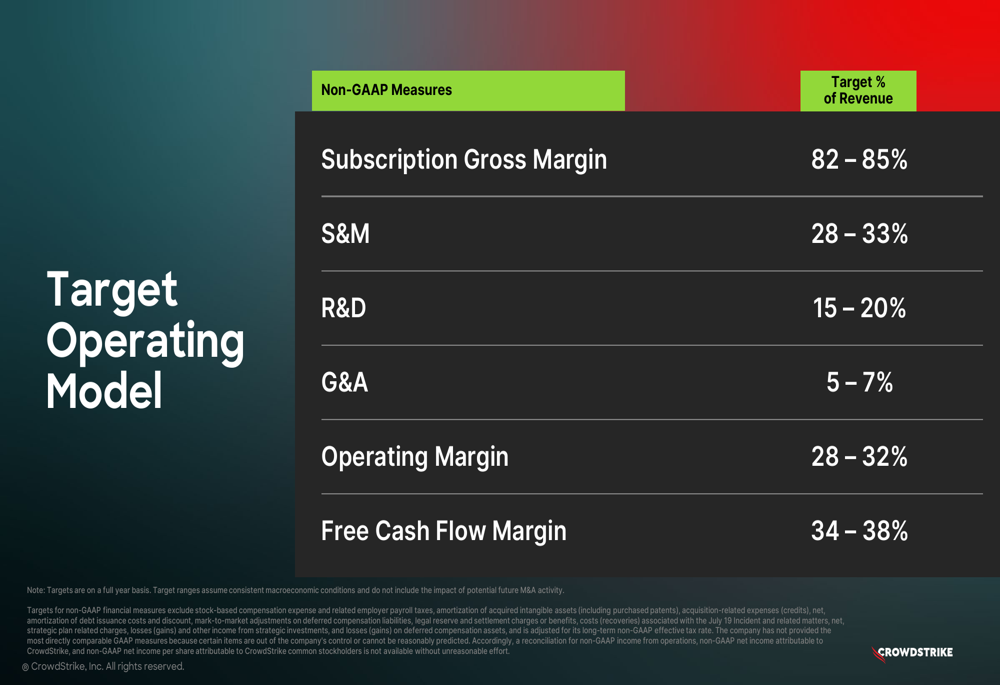 The company also shared its long-term target operating model, which includes subscription gross margins of 82-85%, operating margins of 28-32%, and free cash flow margins of 34-38%: