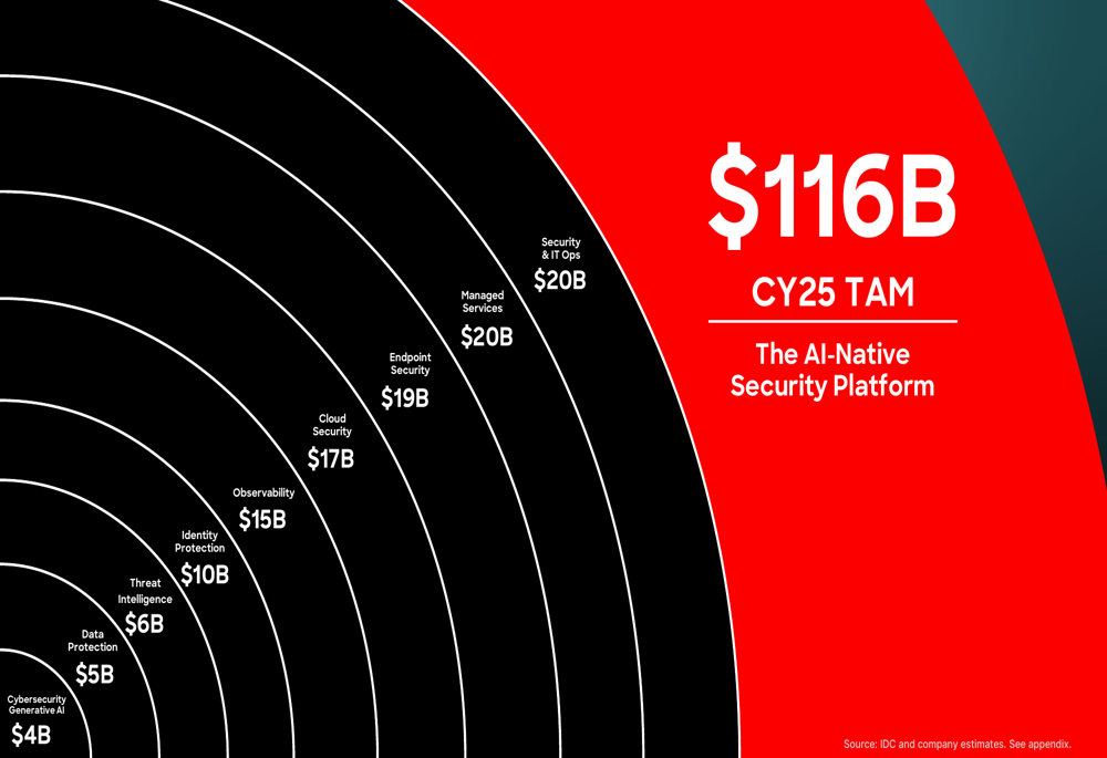 CrowdStrike estimates its total addressable market (TAM) at $116 billion in calendar year 2025, with significant growth potential across multiple security segments: