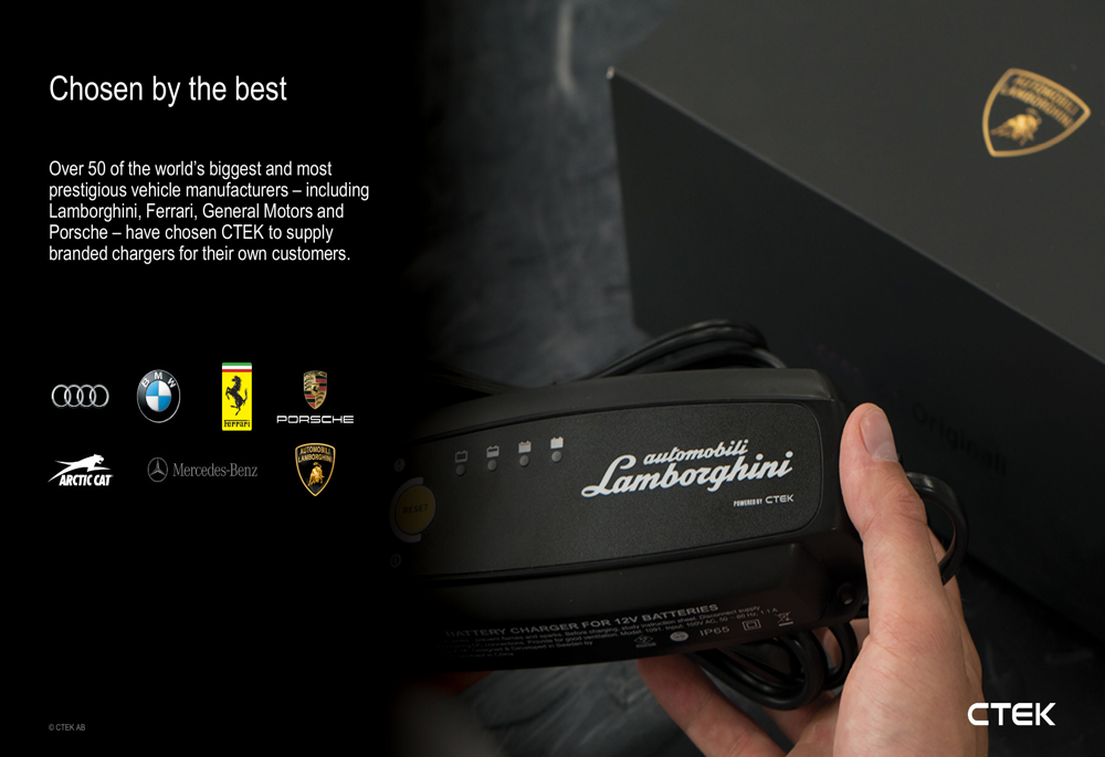 CTEK continues to leverage its strong partnerships with premium automotive brands, with over 50 prestigious vehicle manufacturers choosing CTEK for branded chargers, including Lamborghini, Ferrari, General Motors, and Porsche.