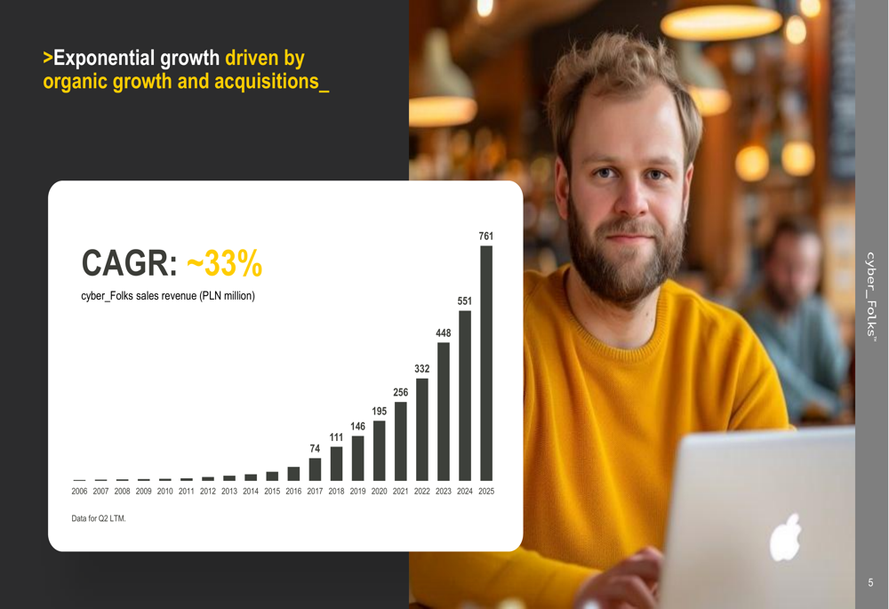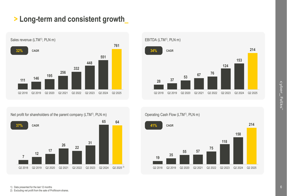 Cyber_Folks has maintained impressive long-term growth across all key financial metrics. Since Q2 2018, the company has achieved a 32% CAGR in sales revenue, 34% in EBITDA, 37% in net profit, and 41% in operating cash flow.