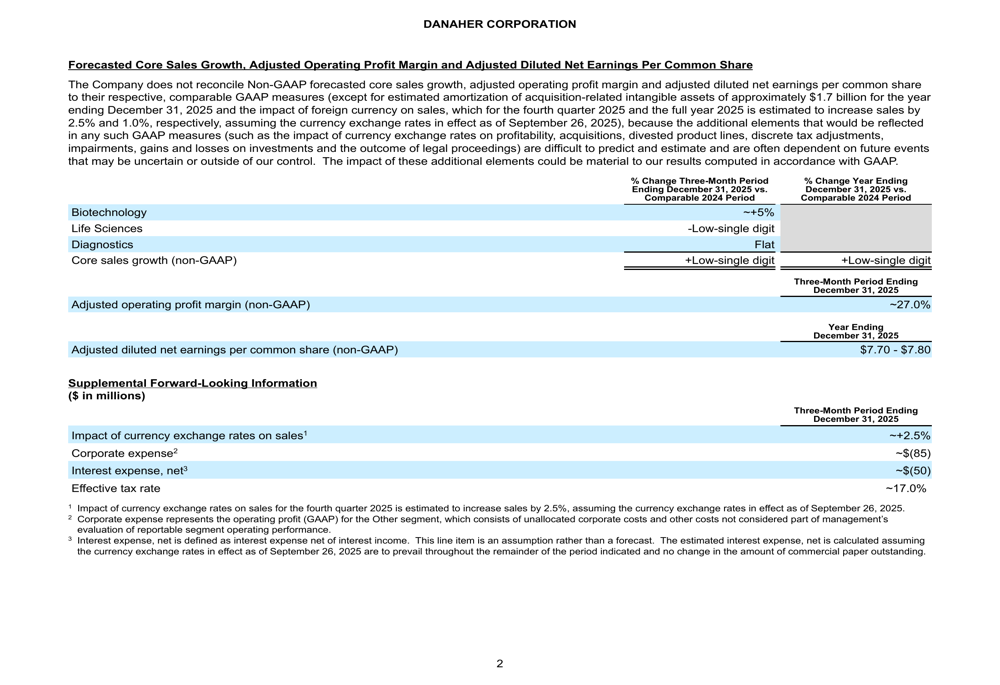 The detailed financial guidance illustrates Danaher’s expectations across segments: