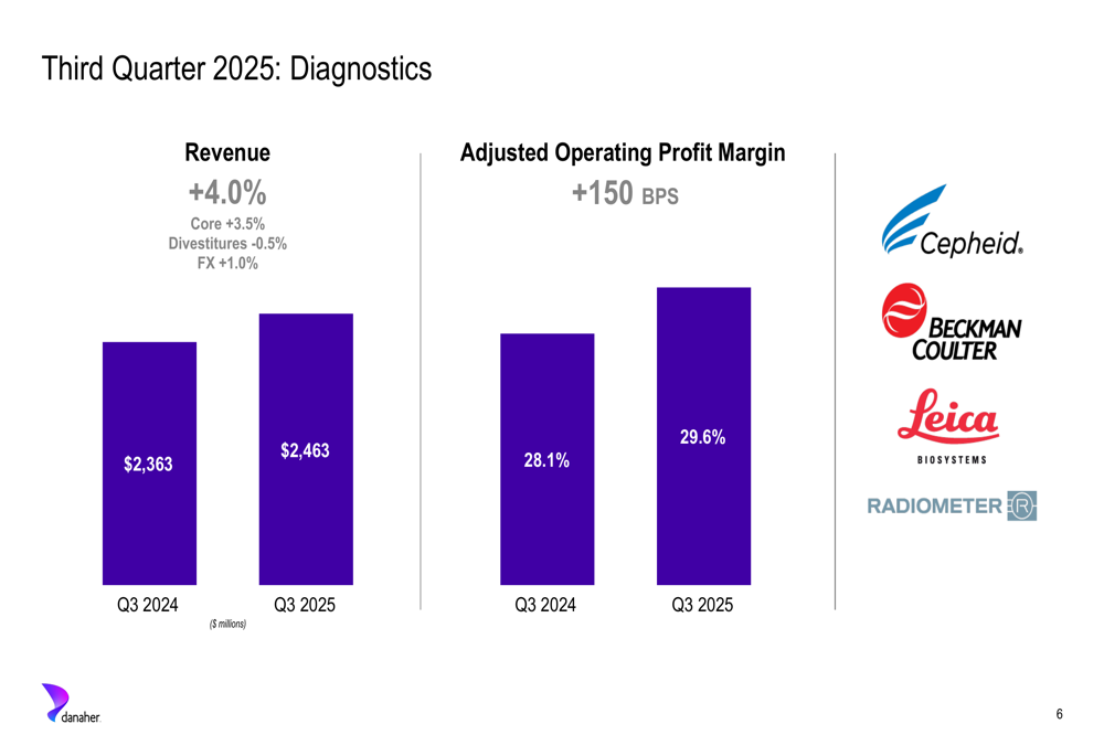 The Diagnostics segment results demonstrate the continued strength of Danaher’s clinical diagnostic platforms: