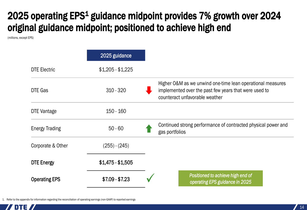 The following graph illustrates DTE’s operating EPS guidance trajectory: