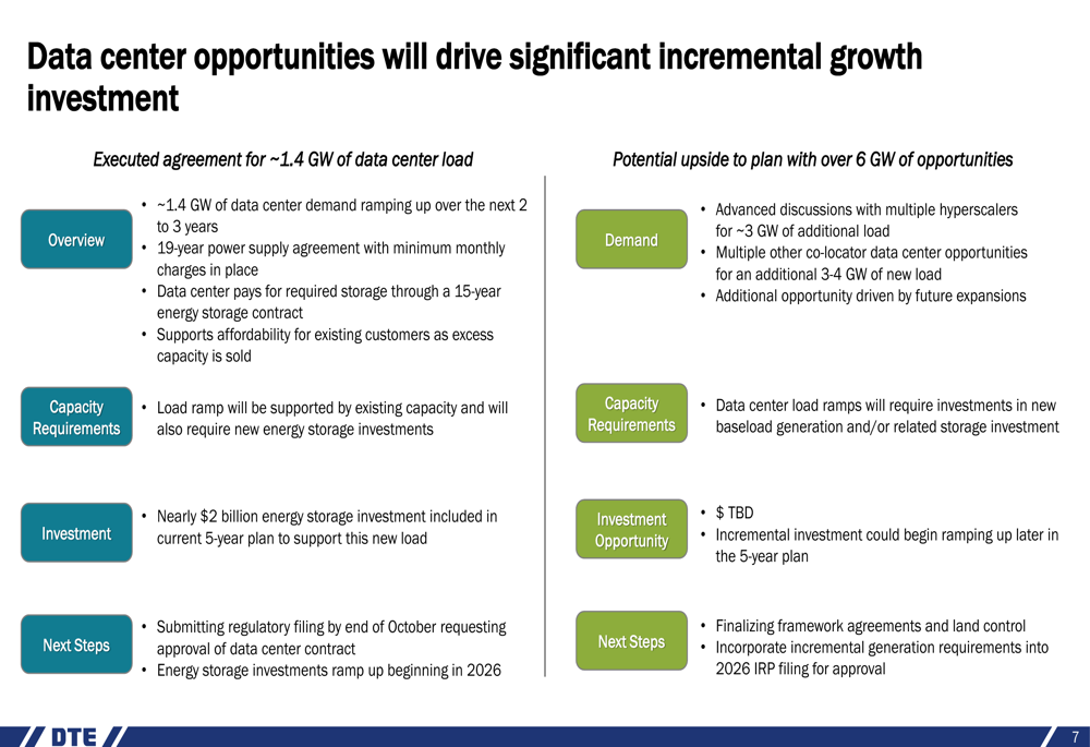 DTE’s data center strategy represents a major growth catalyst for the company. The presentation detailed an executed agreement for approximately 1.4 GW of data center load, with an additional 3 GW in late-stage negotiations. These agreements include 19-year power supply commitments and provisions for data centers to fund required storage infrastructure.