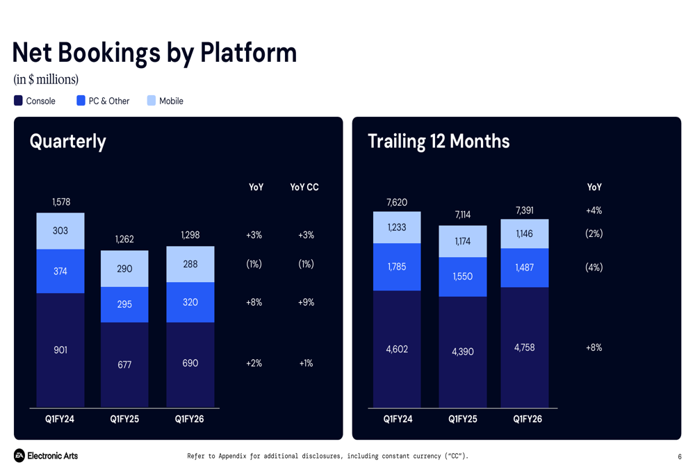 When examining performance by platform, the results show mixed trends across EA’s distribution channels: