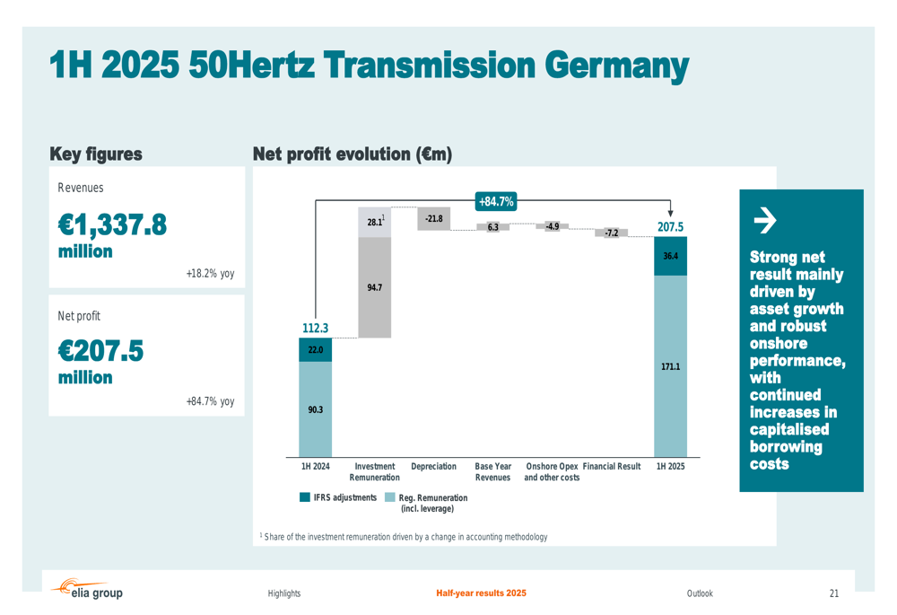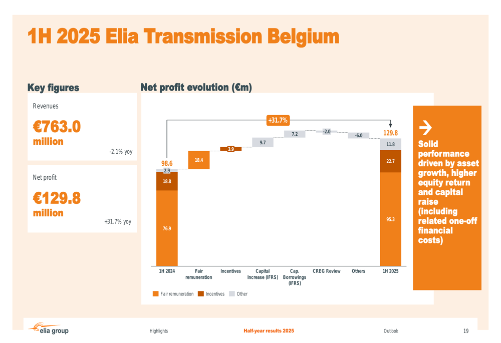 In Belgium, Elia Transmission Belgium (ETB) reported a net profit of €129.8 million, a 31.7% increase compared to H1 2024. This growth was primarily driven by asset expansion, higher equity returns, and the recent capital raise, despite a 2.1% decrease in revenues to €763.0 million.