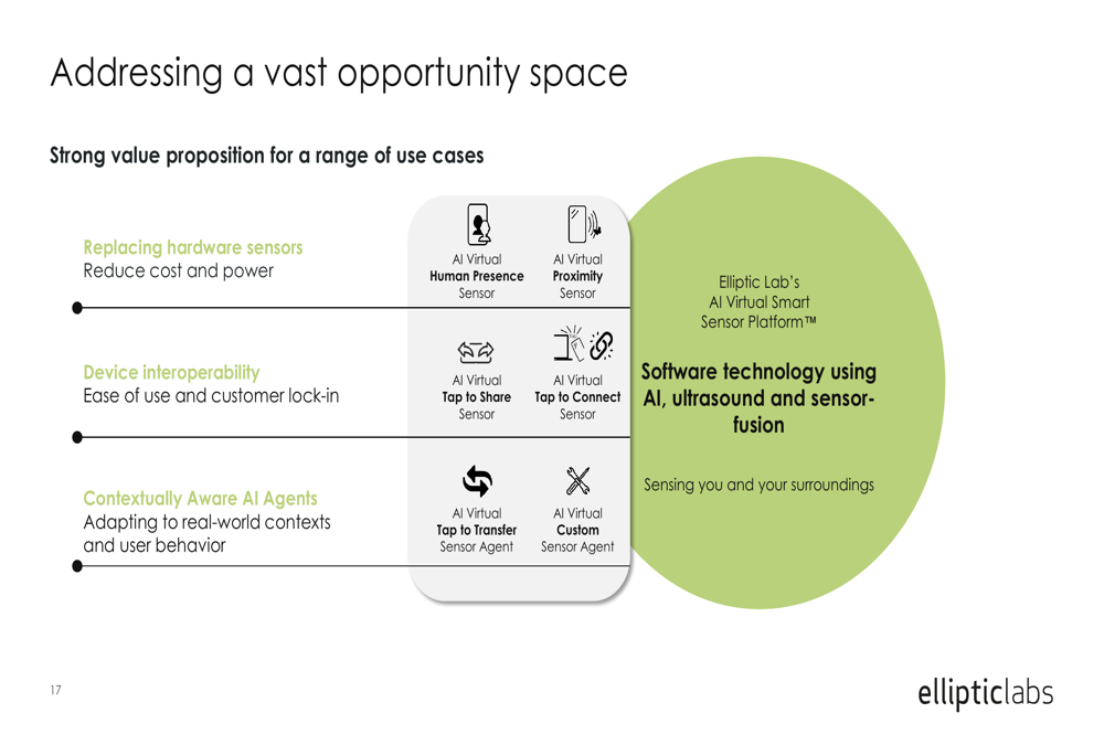 Elliptic Labs continues to expand its product portfolio of AI Virtual Smart Sensors, addressing a growing range of use cases across multiple device categories. The technology platform enables software-based solutions that can replace hardware sensors, reduce costs and power consumption, and enable device interoperability and contextually aware AI agents.