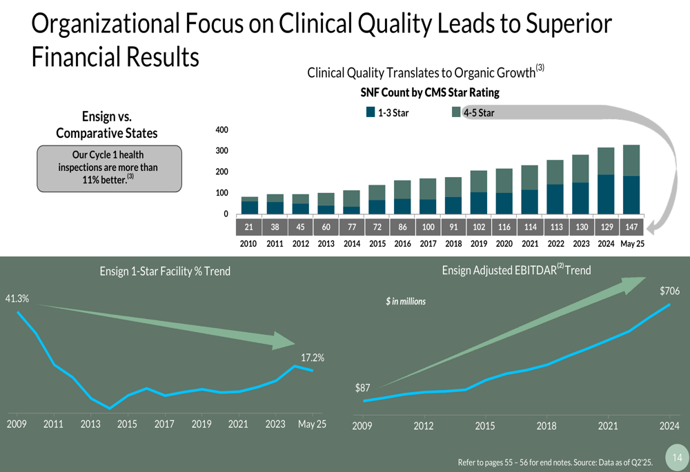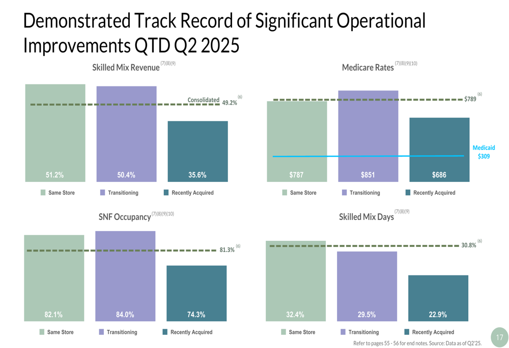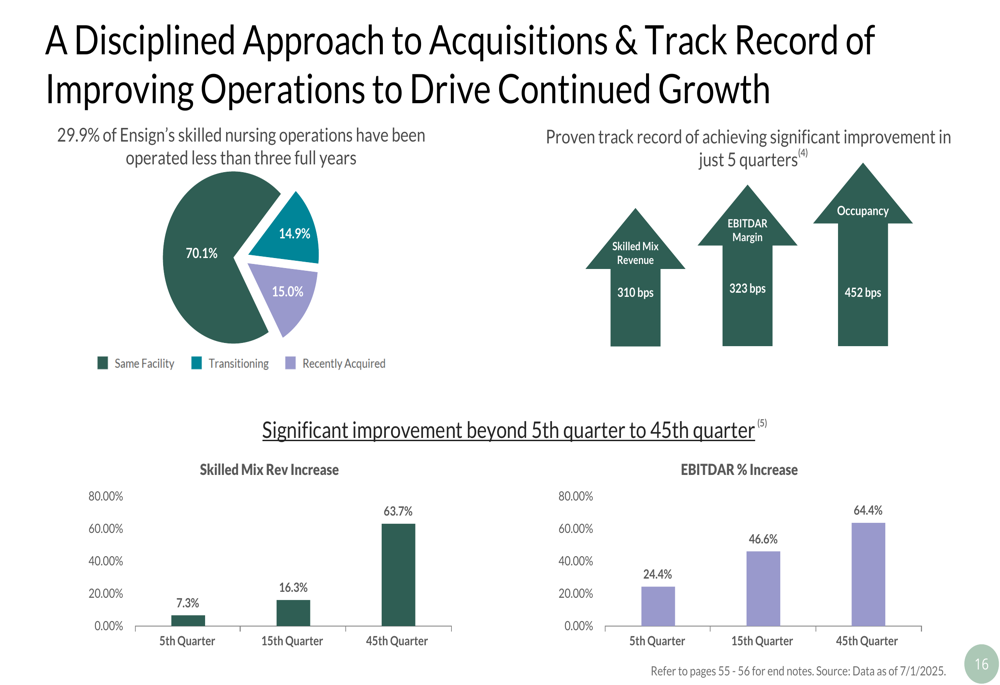 The following chart illustrates Ensign’s track record of operational improvements across its portfolio in Q2 2025: