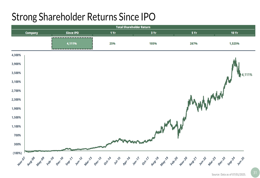 This growth has translated into exceptional returns for shareholders, as shown in the following chart: