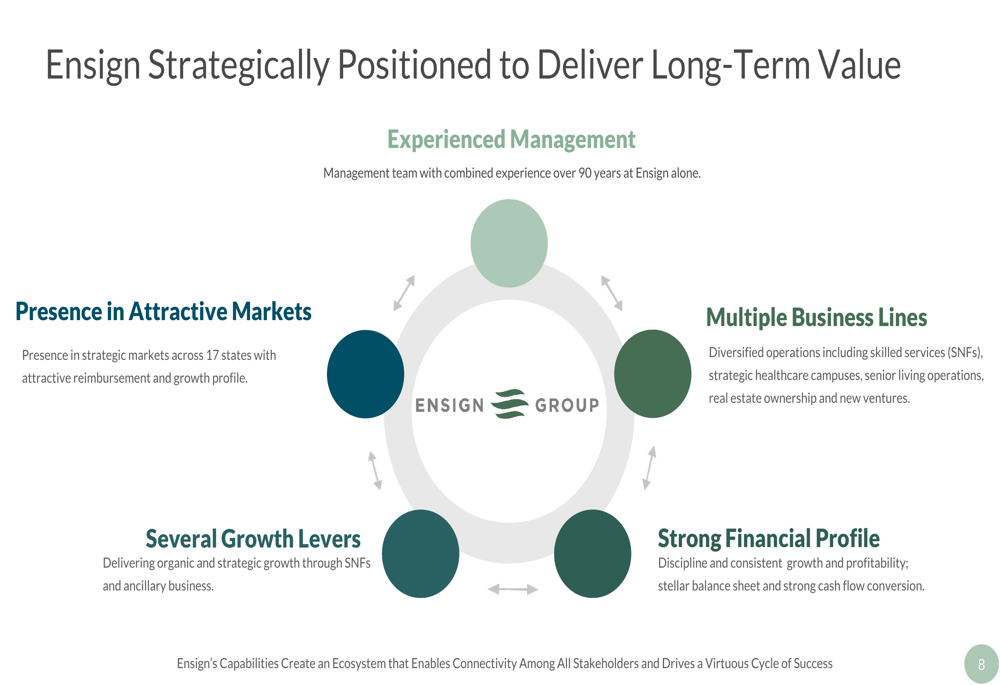 As shown in the following overview of key company metrics, Ensign has established itself as a leading healthcare services operator with a proven track record: