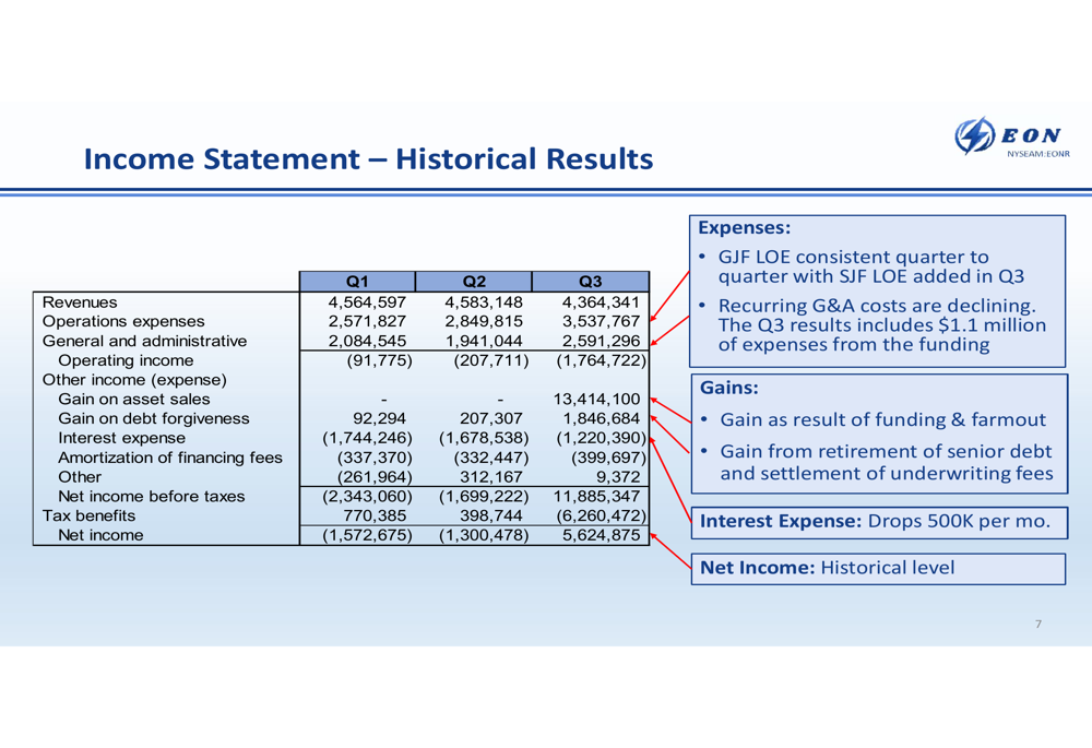 On the operational front, EON reported no safety incidents during the quarter while maintaining consistent production of approximately 1,000 gross barrels of oil per day. The company operates four well service rigs across both fields and completed the installation of two miles of injection pipeline by the end of Q3.