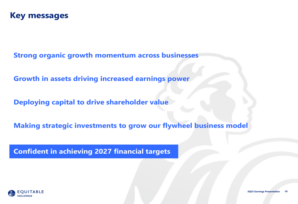 Despite the revenue challenges in Q3, Equitable's management remains confident in achieving its 2027 financial targets. The company reaffirmed its commitment to a 12-15% EPS compound annual growth rate by 2027, supported by strategic investments and organic growth across its core businesses.