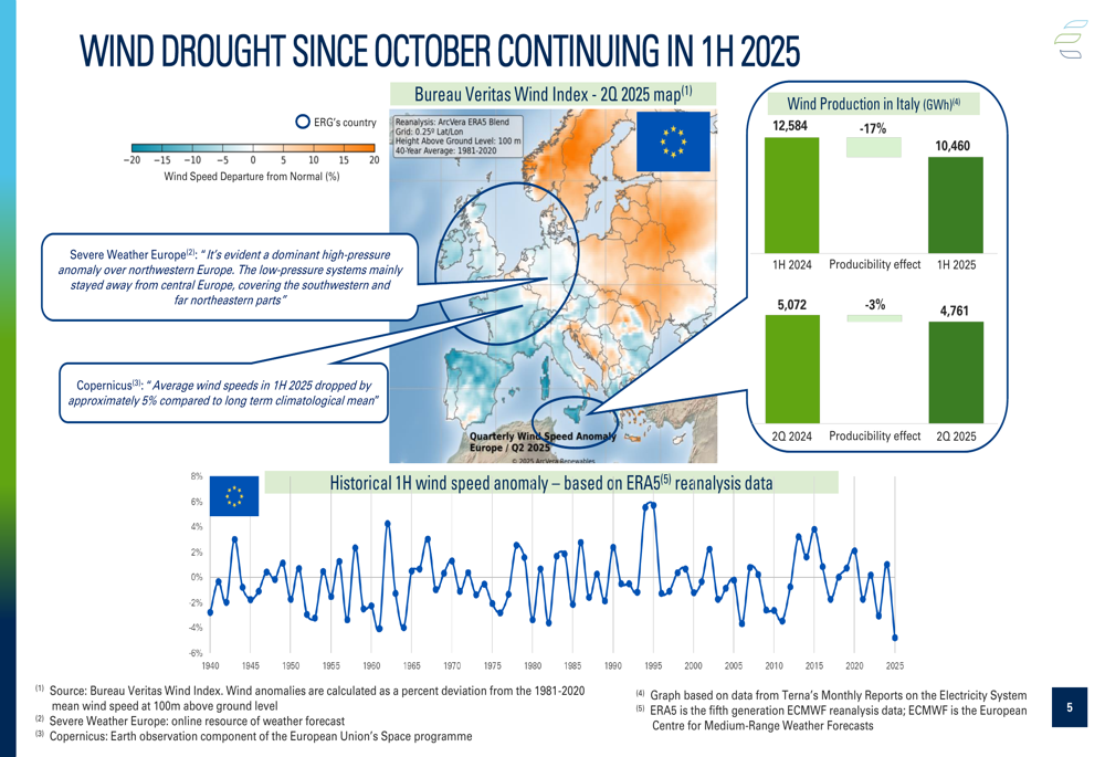ERG continues to face challenges from abnormal wind patterns across Europe, as illustrated in this analysis of wind speed anomalies: