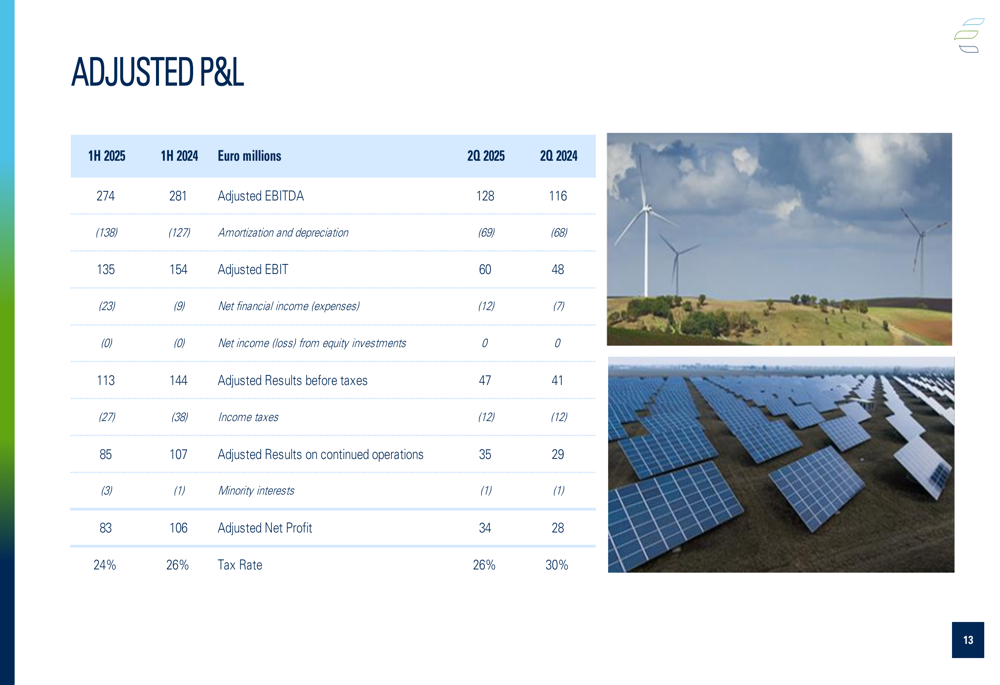 ERG's second quarter performance showed notable improvement compared to the same period in 2024, with EBITDA increasing to €128 million from €116 million, representing an 11% year-over-year growth. The EBITDA margin also improved to 71% in Q2 2025 from 69% in Q2 2024. Net profit for the quarter reached €34 million, up 21.4% from €28 million in the previous year.