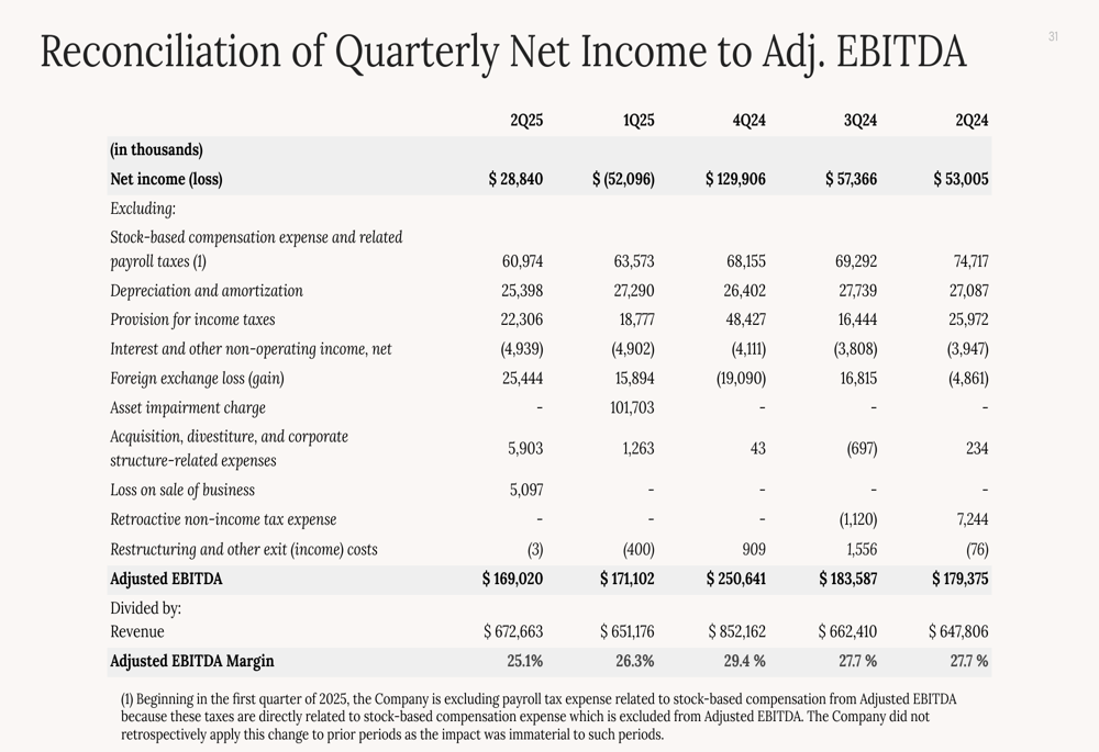 The reconciliation of net income to adjusted EBITDA shows the company’s profitability metrics across recent quarters: