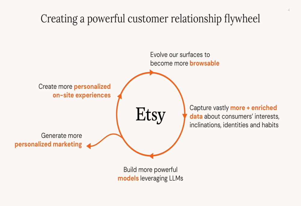 The company’s customer relationship flywheel illustrates how Etsy plans to leverage data and AI to create more personalized experiences: